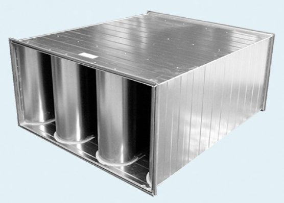 A négyszög keresztmetszetű hangcsillapítókat 100-150-200 mm vastag kulisszákkal gyártjuk.